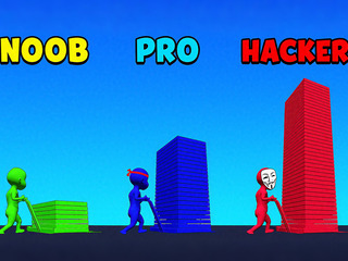 where you must collect blocks of your color and build the bridge stairs to reach the finish line.