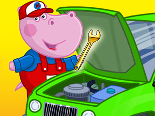 Hippo Car Service Station is a very cute game. Little Hippo opened a car service station in her town. Hearing of this, many animals in her town come to her station to fix cars. Today Uncle Hippo comes to her station because he wants to give an examination to his car. And you will be her Giraffe shop assistant and help Uncle Hippo fix his car. His car is spattered with mud. Use the water gun to clean it up first. Then let's give a whole examination to his car. Thank god he comes to your station. It's got 3 problems in his car: parts that need to be replaced, garbage that needs to be removed, flat tire. Want to know how to fix it? Just play this game!