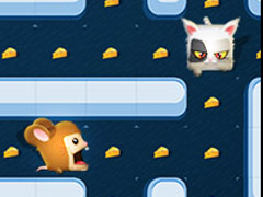 Pacrat is a fun chasing game which is based on the hottest and classical game Pac Man. The rat is very hungry now. He has found the food. However, there are three hungry cats moving around and waiting to catch him. You need to move the rat to eat the food and kill the cat to finish the level. You only have three lives, don't be killed by the cat before you are powerful enough to kill them. Good luck.