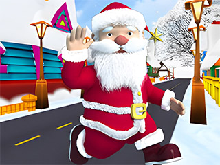 Santa Run is a third-person running arcade game with 3D cartoon obstacles and characters. Your